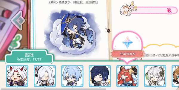 4、总共需要完成17次答题,最后点击分享就能领取40原石奖励。