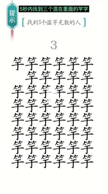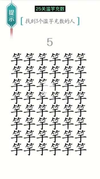 抖音小游戏汉字魔法是一款非常有趣的闯关游戏,游戏第二十五关滥竽充数的提示是找到3个滥竽充数的人,具体该怎么过呢?下面是十大评测小编给大家带来的《汉字魔法》第25关滥竽充数通关攻略,感兴趣的小伙伴们一起来看看吧,希望对大家有帮助哦。