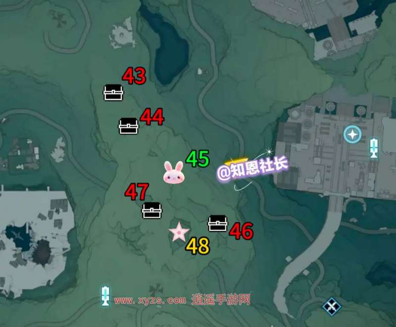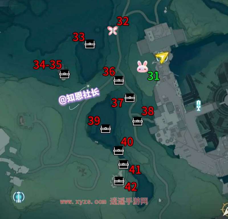 虎口山脉地区的宝箱位置如下图所示,玩家们可以对照着点位和编号前往收集。