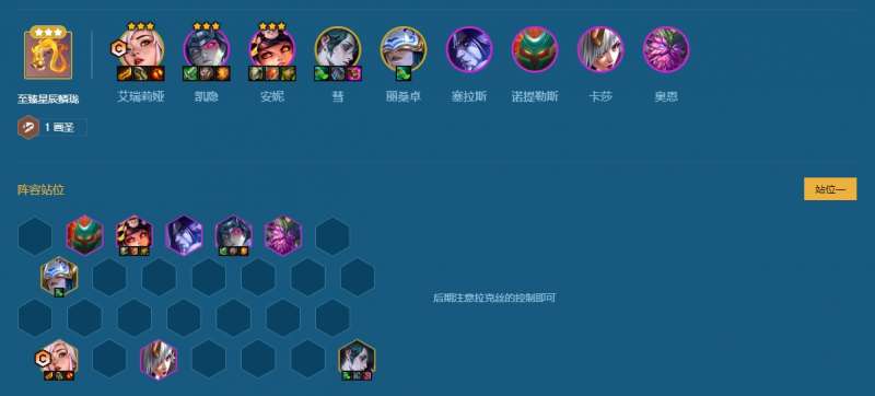 推荐一个胜率比较高的阵容:“刀妹”“凯隐”“安妮”“慧”“丽桑卓”“塞拉斯”“泰坦”“卡莎”“奥恩”,属于九五阵容,并且棋子之间都没有任何羁绊,可以说把卓尔不群的加成发挥到了极致。