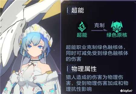 守望猎魔属于超能阵营,造成的伤害为物理伤害,对付绿色融核体时具有更大优势。