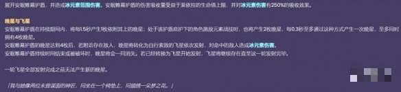 展开安眠帷幕护盾,并造成冰元素范围伤害。安眠帷幕护盾的伤害吸收量受益于莱依拉的生命值上限,并对冰元素伤害有250%的吸收效果。