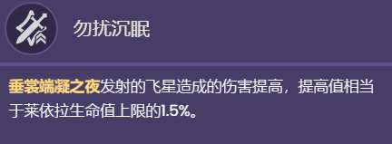 垂裳端凝之夜发射的飞星造成的伤害提高,提高值相当于莱依拉生命值上限的1.5%。
