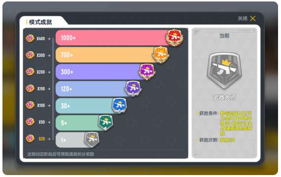 同时在【模式选择-模式详情】可以查看模式成就,在模式成就中达到对应的阶段也可以领取对应的成就积分奖励!