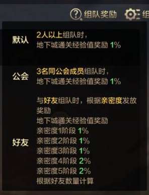 组队不仅可以更快的击败敌人,节省时间,而且还有额外的经验加成,2人以上队伍通关经验奖励1%,同公会再奖励1%。队长带领队伍通关100次剧情地下城,还能获得独一无二的“赛丽亚的思念”称号。