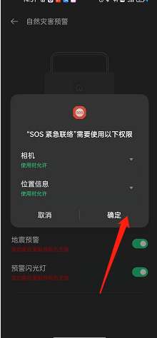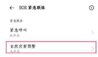 2、选择SOS紧急联络,点击自然灾害预警功能。