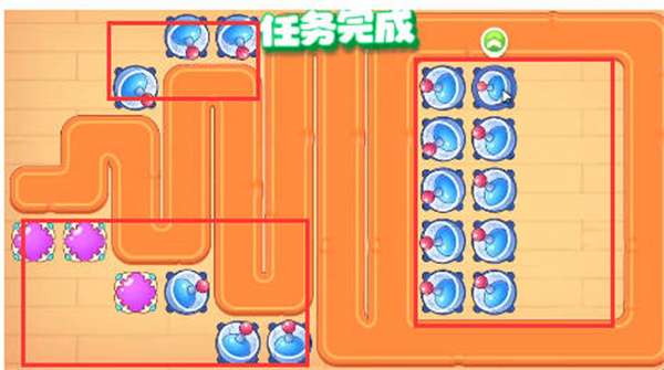 1:第一场我们选择风扇即可,然后我们在后排放置一个普通的炮塔,然后我们开局在出口的位置放置风扇清理怪物和障碍物,然后最后的样子如图所示;