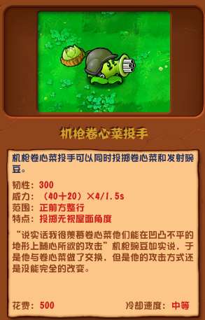 机枪卷心菜投手可以同时投掷卷心菜和发射豌豆。