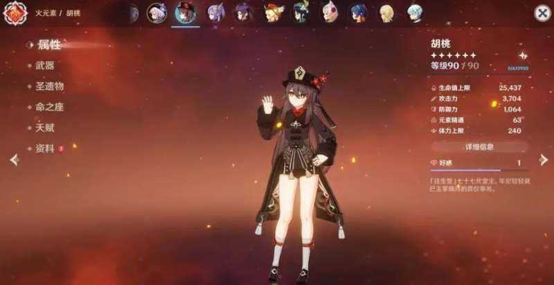 胡桃是游戏中一个非常热门火系角色,她的实力在所有火系角色中可以说名列前茅,使他成为了游戏中目前最强的火C角色。除了强大的战斗力,她的外观也很受玩家的欢迎。在技能的搭配上面,她的1命特性更能提升她的战斗能力。胡桃自从上线以来,一直就是T0队伍中的其中一员。还有火属性的班尼特,安柏,这两个角色对于新手玩家来说也是不错的选择。