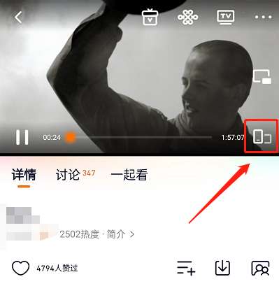 1、打开腾讯视频,进入视频播放页面,点击全屏图标,横屏播放。