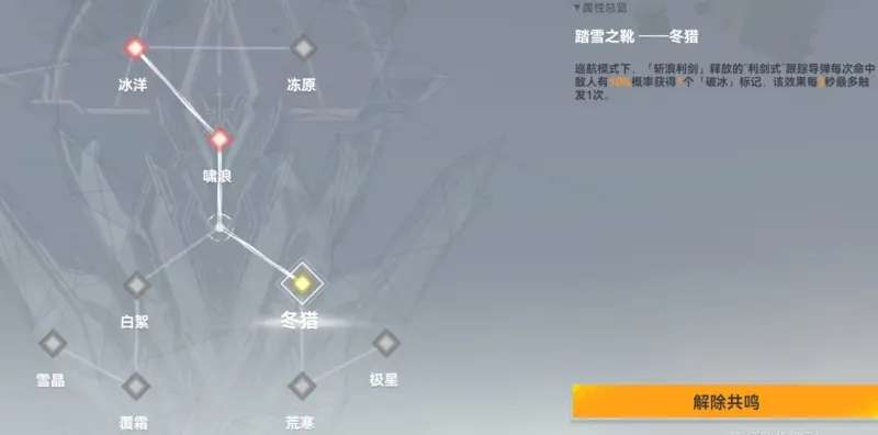 【冬猎】:巡航模式下,普通攻击有10%概率获得1个“破冰”标记,每3秒至多触发一次。