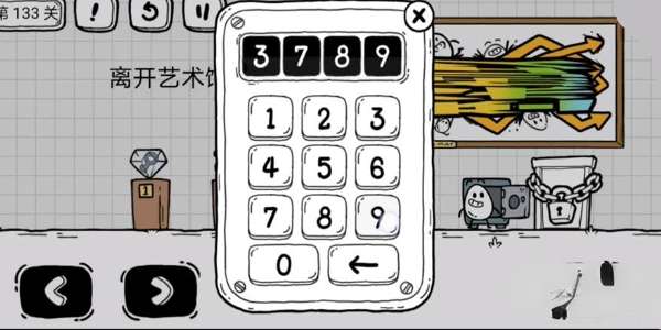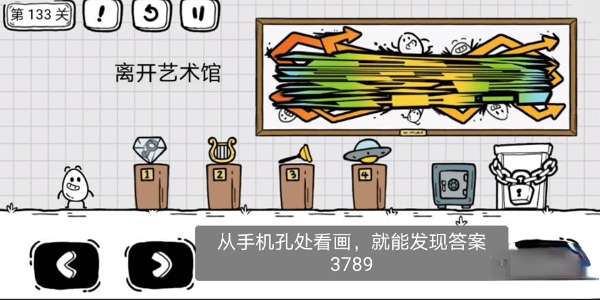 1、玩家进入游戏后,玩家需要从手机孔处看中间的画,就可以看到密码3789;