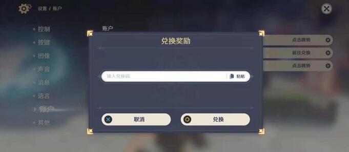 进入原神手游点击左上角的派蒙,点击设置,再点击账户,找到前往兑换,在框内粘贴兑换码点击兑换就好啦。