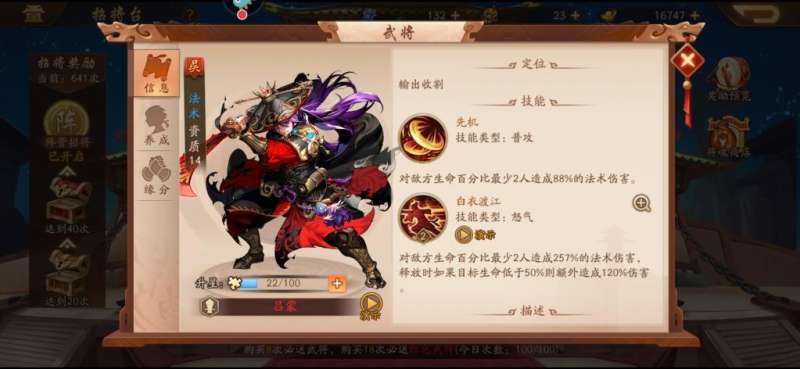 鲁肃是吴国的谋士,擅长用战略眼光来支配战局。他的技能在辅助方面表现卓越,能够提升全队的防御力和行动力。鲁肃适合和攻击型将领搭配,平衡攻防,增强队伍的整体能力。