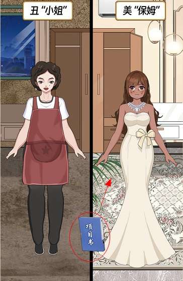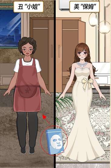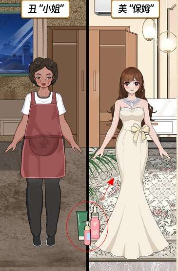 1、把高端护肤品拖动到右边的女孩身上。