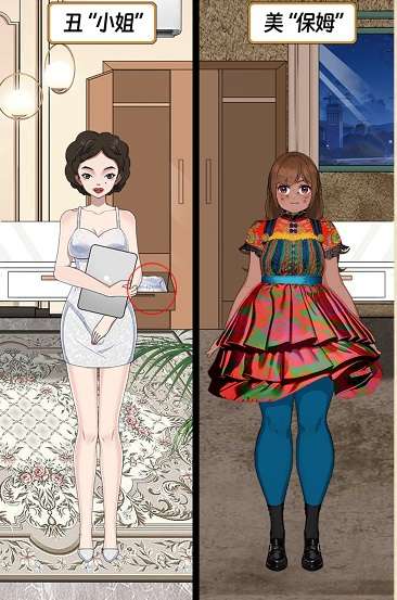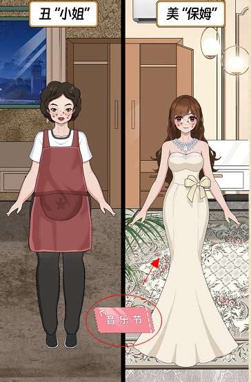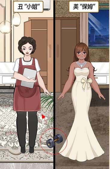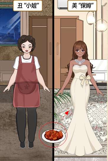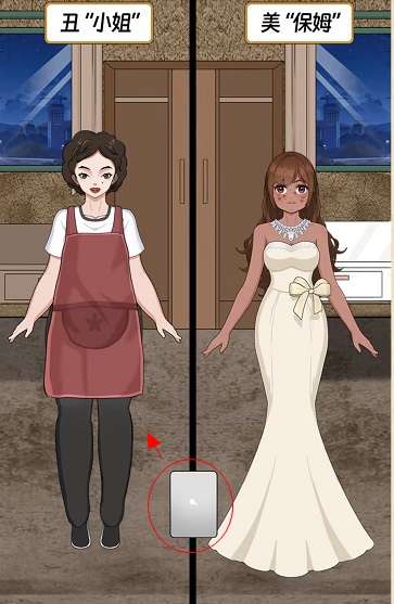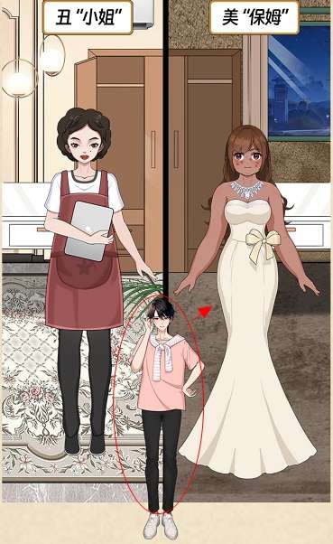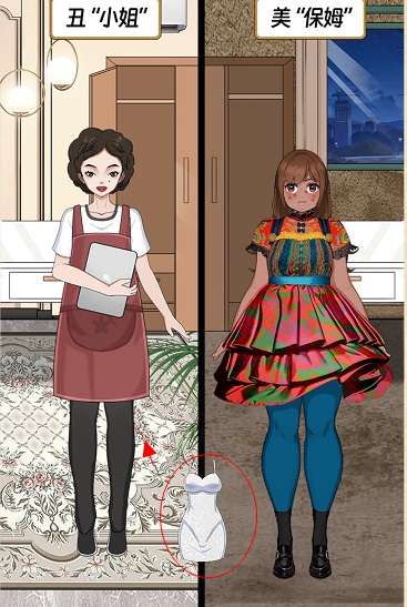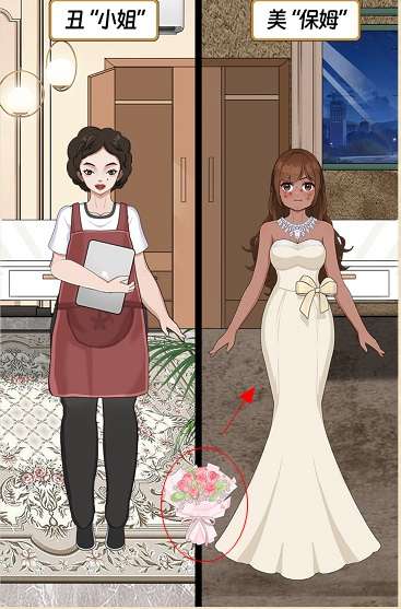 13、点击左边的衣柜抽屉往下滑动,将抽屉里的裙子拖到左边女孩身上,通关成功。