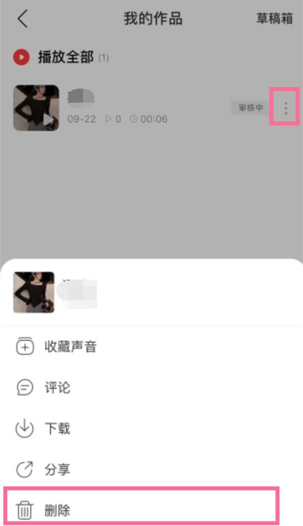 2、在我的作品中,点击右侧三个点,点击删除即可。
