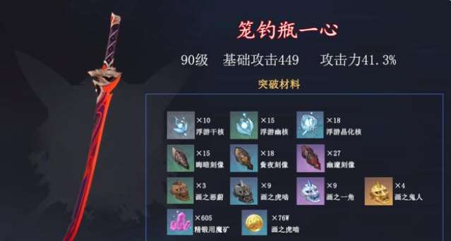 在原神游戏中笼钓瓶一心是最近上线的全新四星单手剑武器,很多玩家还不清楚笼钓瓶一心突破需要那些材料。接下来就让小编给大家带来原神笼钓瓶一心突破材料一览,感兴趣的小伙伴们一起来看看吧。