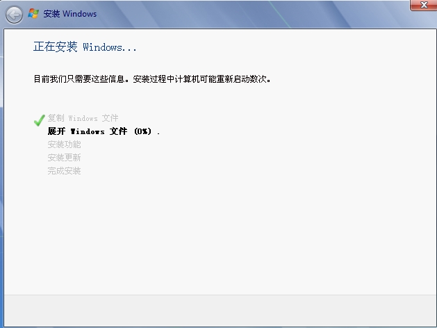 6、安装系统正式启动,首先出现以下图片,一步一步完成上面的任务,此过程会自动重启计算机一次重启以后继续安装过程,此过程请不要做任何操作,系统会自动完成。