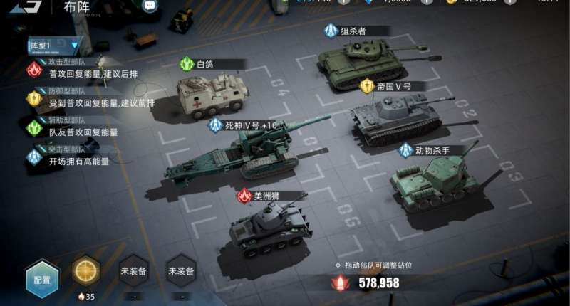 银狐、斑马火炮、床垫火炮这三只部队则是为死神Ⅳ号和狙杀者补足伤害,务求一击制敌,让地方部队丧失输出能力。银狐主动技能【坦克重炮】是对敌方后排造成AOE穿甲伤害,而斑马火炮主动技能【高爆火力】同样是单体点杀,最后由床垫火炮的【齐射火炮】进行收尾工作。