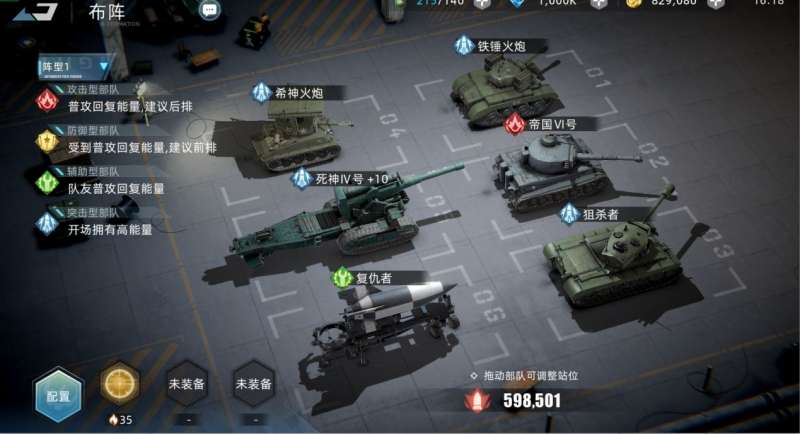 配队思路组建这套阵容的核心点在于,是否拥有死神Ⅳ号和狙杀者这两支S级部队。他们能够在开战后,短时间对地方后排造成大量伤害,斩杀敌方核心输出单位。死神Ⅳ号主动技能【远程轰射】能够造成大量穿甲伤害和吸取敌方能量,影响地方技能输出;而狙杀者的主动技能【冲锋进击】则是对敌方攻击最高部队进行点杀,并有几率造成多段伤害,真正的“突袭”大杀器。