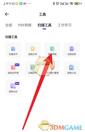 3、点击扫描工具下方的提取表格即可。