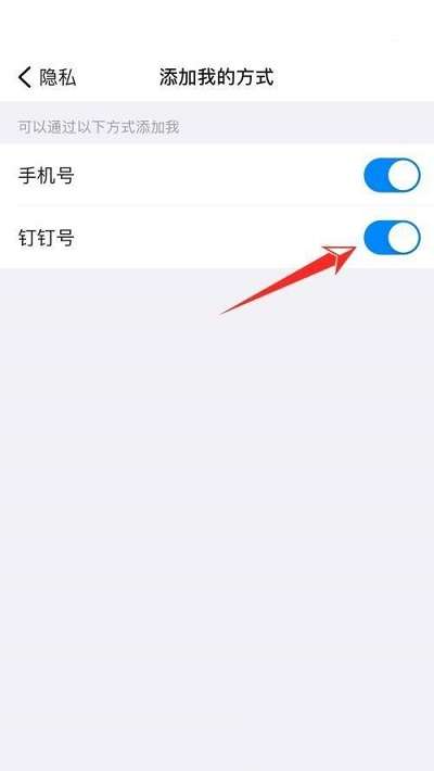 2、在钉钉隐私设置的页面中找到添加我的方式(如图所示)。