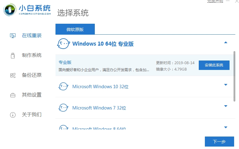 2、选择需要安装的Win10系统,点击安装此系统。
