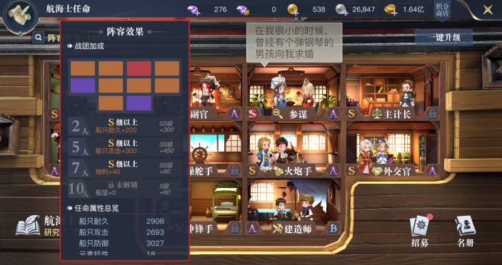 3、当获取SS航海士后需根据战团收益,查看是否要换下S航海士。