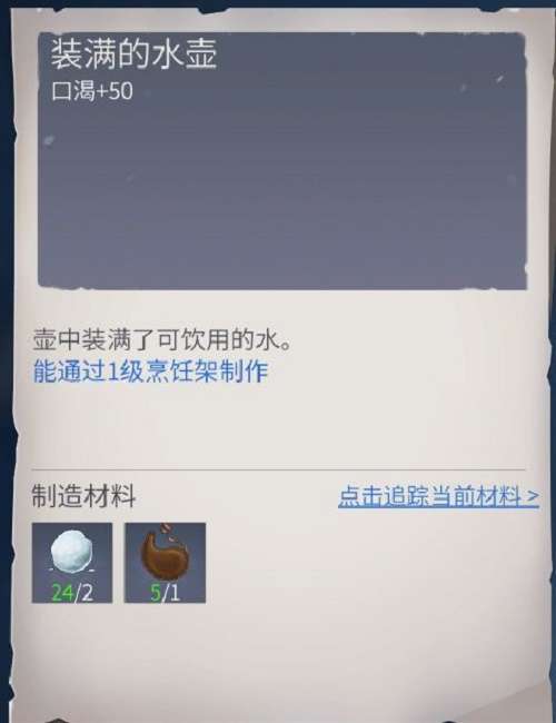 因为水是从雪中获得的,并没有直接的水资源,需要用空水壶和两颗雪球在一起可以合成装满水的水壶,这时候水壶就能使用了