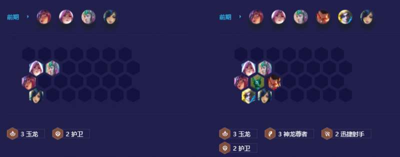 2-1不升人口,优先拿阵容体系内的牌,一般推荐走五连败拿装备,选秀回来最好有个蓝霸符;2-3自然四人口,护卫+三神龙尊者过渡即可,尽量保持精致连败;3-1梭哈搜三星卡尔玛,优先三星级是卡尔玛大于蕾欧娜大于塔里克大于瑟提,运气好的话起码有两个三星,但是最好是拥有卡尔玛和蕾欧娜三星后再上人口,如果遇到卡牌的情况,在3阶段选秀回来后再搜一波就上人口了,六人口补伊泽瑞尔开两迅捷射手即可;七人口要么找石傲玉开六玉龙要么迅速上八人口,不要做太多的停留,八人口搜到六神龙尊者就成型了。