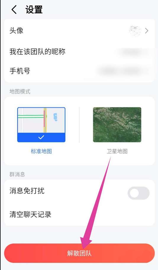 3、接着,进入设置页面,滑动到底部,选择解散团队。