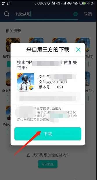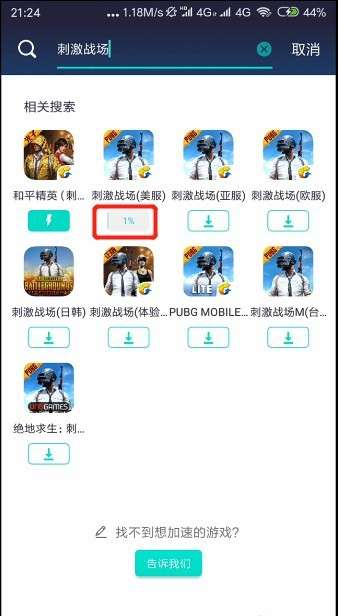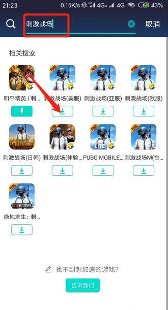4、输入并搜索【刺激战场】,之后就会看到很多服。