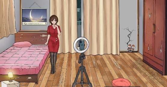 2、点击主播脚边的床,会出现绿色的手,仔细看空调上有头发。