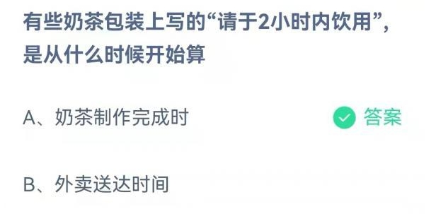 奶茶上写的2小时内饮用是从什么时间开始算
