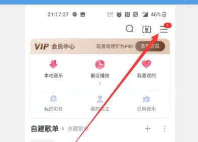 在咪咕音乐app主页面点击右上角三个横线。