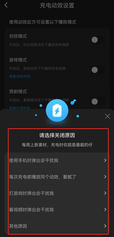 2、在右侧功能栏中找到“充电动效”功能进入。