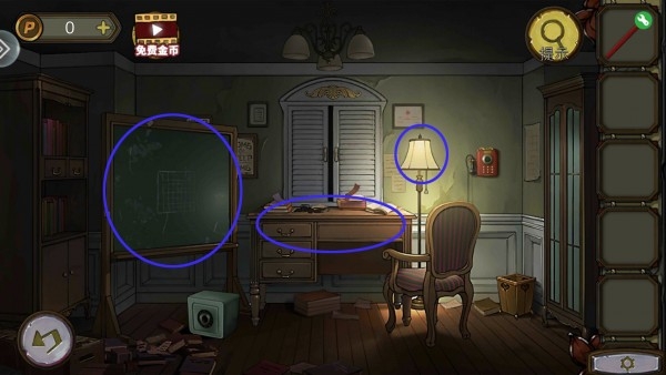 根据台灯和黑板的线索,打开书桌柜子,拿到清洁剂。