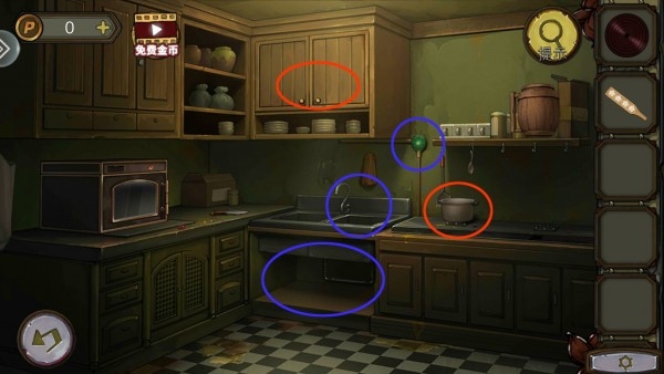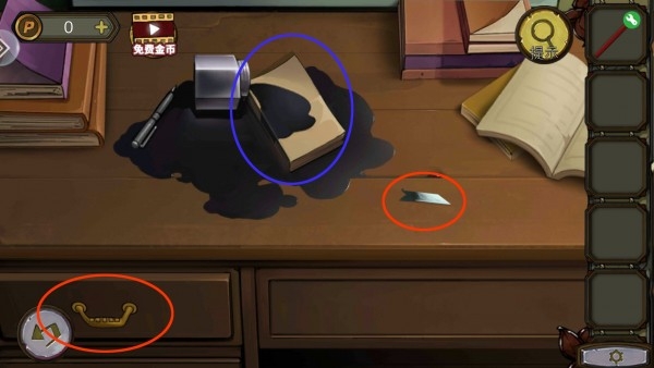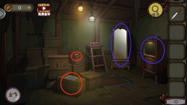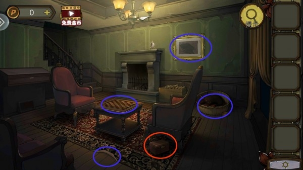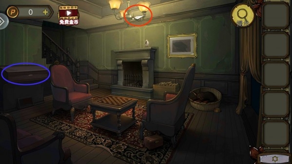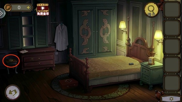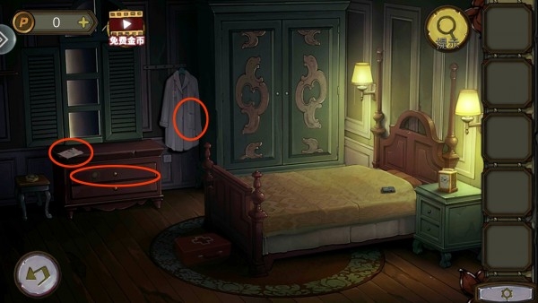 垫子下拿到镊子,镊子拿餐馆下水口的碎片。碎片放木盒上拼好,拿到钥匙。钥匙开3楼的柜子,拿到硬币。