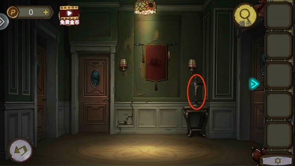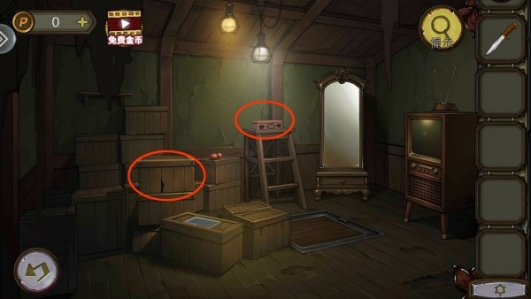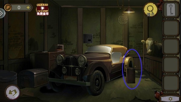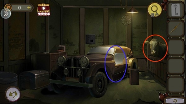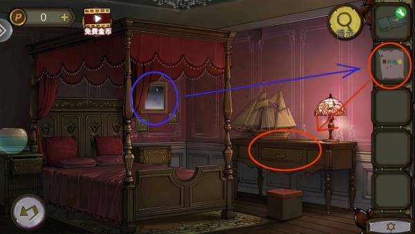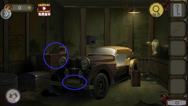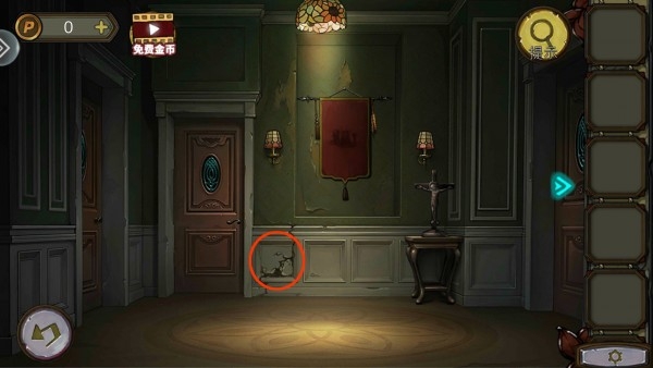 楼梯口的破墙里,用锤子拿到磁铁。磁铁在右边房间床下拿到钥匙。