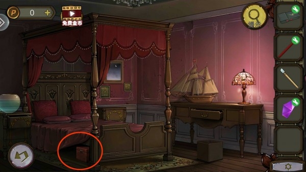 红钥匙打开左卧床下的箱子,拿到紫瓶子。
