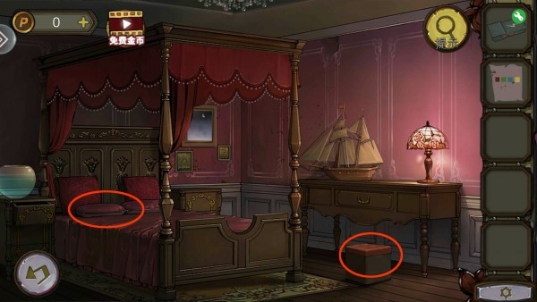 床上拿到【日记残页】,到甲板上(之后到甲板直接点击图二圈的位置)。