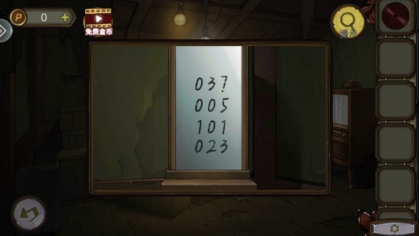 根据镜子上的数字,调整电视频道,4个频道得到4个数字,打开餐厅密码锁,拿到撬棍。