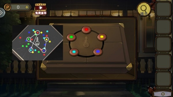 解谜思路:点亮灯比较简单,不赘述了。密码看对应的符号,符号对应颜色,同颜色的上下拼接就是密码。