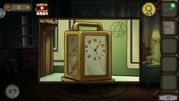 衣服口袋拿到指针,桌上拿到纸条,指针装到桌柜的钟上。