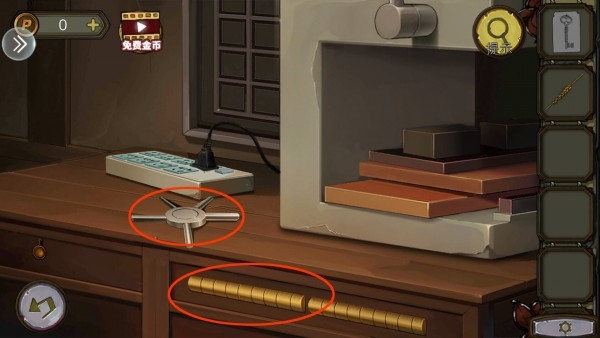 转盘用来打开书房的保险柜,拿到半个齿轮刀,两半个齿轮刀用金属粘合剂粘合。