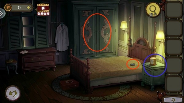 钥匙开左边卧室,开灯。枕头下拿到扳手,扳手打开椅子拿到玻璃刀。