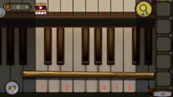钥匙打开钢琴,按下所有琴键,拿到木棍。木棍拿吊灯上的信封,信封里拿到唱片。