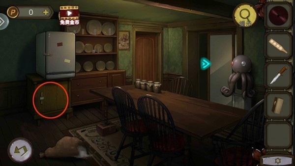 桌下拿到【鱼金属片】,用【鱼金属片】打开门,拿到【杀虫剂】。