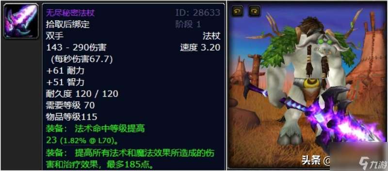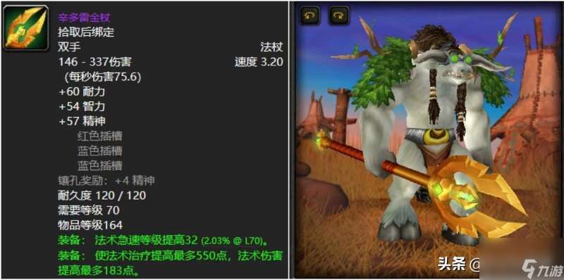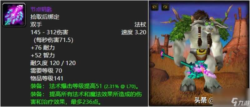 他来了,他来了,喵叔整个TBC版本更爱的狂野之柱法杖他来了,当然喵叔也知道基本上玩熊T的铁定也是都喜欢这东西的,仿佛远古世界之树嫩枝精心打造而成,真的是太好看了,必须上榜啊。